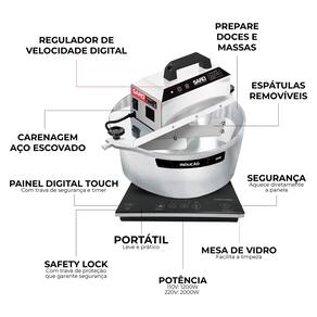 CARACTERÍSTICAS: - Fogão de Indução Integrado - Regulador de Velocidade - Construção em Aço Inoxidável - Pá Misturadora Resistente - Estrutura Robusta - Motor de Alta Potência - Capacidade de 10 Litros - Sistema de Segurança Integrado