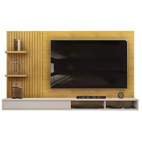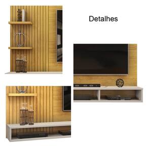 Paine Para TV até 60 Polegadas Ripado com Nichos Bento Cedro Bali DJ Móveis - Cinza