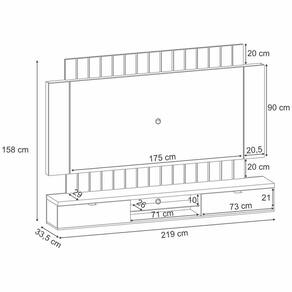 Produzido em MDF/MDP e com pintura UV, o Painel de possui 2 portas basculantes com puxadores na cor champanhe, que oferecem espaço para guardar objetos e acessórios. Além disso, ele conta com uma prateleira de vidro que pode ser usada para expor itens decorativos ou aparelhos eletrônicos. O detalhe em madeira ripada na parte superior do painel confere um toque de sofisticação e elegância ao ambiente. O Painel Suspenso suporta de até 70 polegadas e possui iluminação em LED, que cria um efeito aconchegante e charmoso. Ele é ideal para quem quer aproveitar melhor o espaço da sala e valorizar o seu estilo.