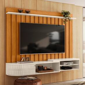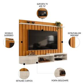 O Painel 75 Pol e Bancada Suspensa Emília M01 Off/Cinamomo é a escolha ideal para quem busca um móvel com design inovador e funcionalidade para a Sala de Estar.