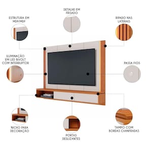 Painel 75 Pol e Bancada Suspensa Trento Off White/Freijó C05