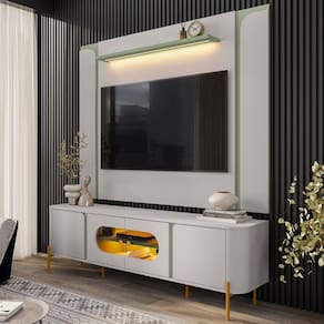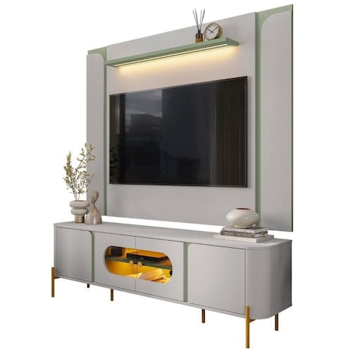 Painel 75 Pol e Rack Bancada Com LED 180cm Off/ Pistache B02 - Mpozenato