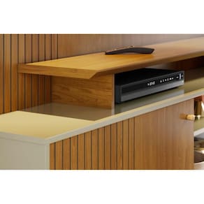 MDP e MDFO Home Theater Ares, da marca Madetec, é ideal para TVs de até 75 polegadas. Produzido em MDP e MDF com revestimento em pintura UV, conta com 1 porta deslizante em MDF frisado, 2 prateleiras e puxador dourado pontual.