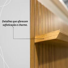 A Estante Home Bancada Suspensa Aurora é ideal para quem busca sofisticação e funcionalidade. Com porta deslizante e painel lateral em MDF frisado (baixo relevo), ele traz um design moderno e elegante. O puxador pontual dourado fosco adiciona um toque de requinte, enquanto a prateleira superior com borda frontal chanfrada oferece um acabamento diferenciado. Fabricado com painéis em MDP de 15 e 25mm, o painel é resistente e durável. Desenvolvido para ser fixado na parede, o televisor deve ser fixado diretamente no painel, que suporta TVs de até 65, proporcionando um visual clean e organizado.