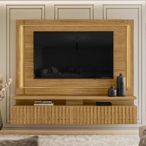 Painel Estante Bancada Suspensa Com LED Tvs até 75 polegadas Gaia