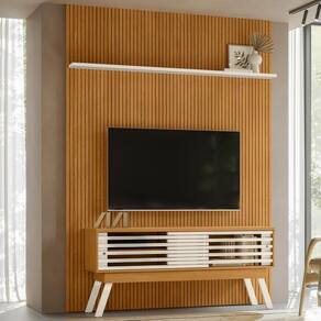 Painel e Bancada Panorama, conjunto atual que propõe um visual moderno e funcional para o seu lar. Estrutura em MDP/MDF com acabamento em pintura UV texturizada, suporta TVs de até 65 polegadas. Conta com portas de correr com sistema de abertura por trilho plástico, frisos do chão ao teto (MDF baixo relevo), prateleira superior e interna, além de 4 pés estilo retrô (em plástico). Fixação feita por parafusos. Este produto será entregue em 4 volumes.