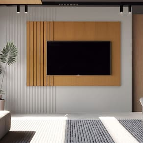 Compatível com TVs de até 70 polegadas, o Painel Boto conta com estrutura firme e proporções bem equilibradas, oferecendo o suporte necessário para acomodar o equipamento com segurança e estilo.