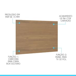 Caracter?sticas: Refer?ncia: 6000 Material: MDP de 15 mm Acabamento: Pintura UV na cor Carvalho Fun??o 1: Cabeceira Cama Box Solteiro Fun??o 2: Painel para TV at? 32 Polegadas