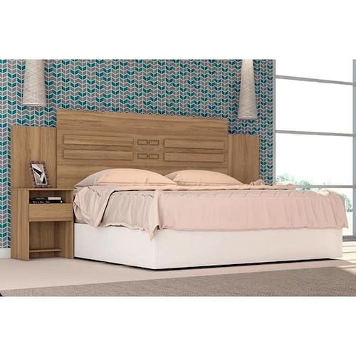 Painel Cama Box Madeirado Casal Triunfo C/ 2 Mesas E 2 Gavetas Amêndola Touch - Demóbile