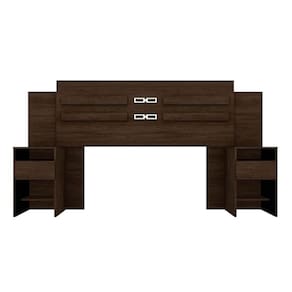 Cabeceira Cama Box Madeirado Casal Triunfo c/ 2 Mesas e 2 Gavetas Ébano Touch - Demóbile