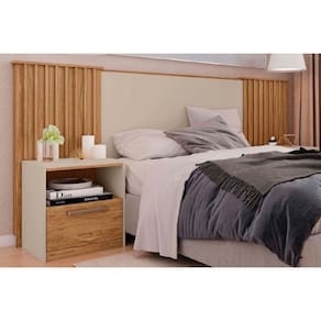 Cabeceira Cama Box Madeirado Extensível Casal/Queen/King Lucius 2 Mesas c/ 1 Gaveta Freijo/Off White - Caemmun Marca: Caemmun