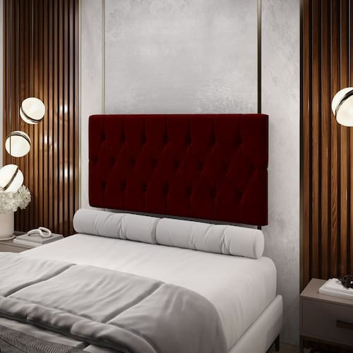 Características do Produto: Madeira de eucalipto proveniente de reflorestamento Fixação com grampos galvanizados Espuma Poliuretano D20 Revestimento: Sued Cor: Bordô Tamanho: King Fixação na parede via suportes metálicos. Embalagem: papelão ondulado, malha e plástico Garantia de 3 meses contra defeitos de fábrica.