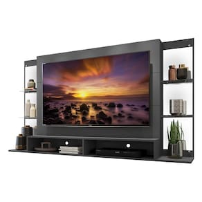 Conteúdo da Embalagem: 1 (um) painel para TV 1 (um) kit com 4 prateleiras de vidro 1 (um) kit com 6 espelhos