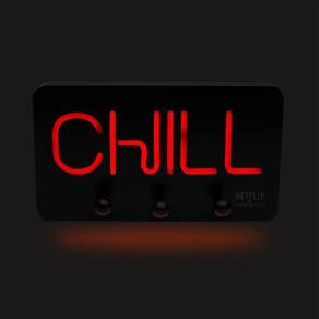 Painel Com Led E Ganchos Netflix Chill Está no ar... A sessão de relax and chill vai começar! Pra criar um clima ambiente enquanto assiste sua série ou filme preferidos, nada como uma boa iluminação. E essa daqui simula o efeito neon com a palavra CHILL, dando a deixa de que quando a luz acender, o modo ?chill? estará ON. Além disso, o Painel Com LED e Ganchos Netflix Chill, como o nome diz, tem 3 ganchos para pendurar acessórios, como o casaco e o roupão. Ideal pra fazer aquela troca de looks na hora em que chegar em casa. Ah, nada como o conforto do lar com a nossa comfort série, né?
