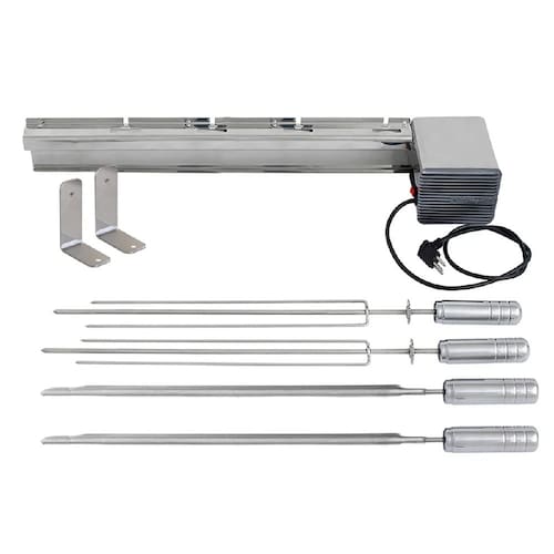 Acionado por um motor elétrico bivolt. Rotação cruzada (Os espetos giram em sentidos opostos, evitando a interferência entre os espetos). A comodidade dos espetos giratórios e os benefícios de sua técnica deixam a carne mais suculenta e grelham por igual, com total controle do ponto.