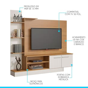 Caracter?sticas: Produzido em MDP de 15 mm Acabamento UV Portas com Dobradi?a Met?lica Puxadores Al?a em ABS Para TVs de at? 50 Polegadas