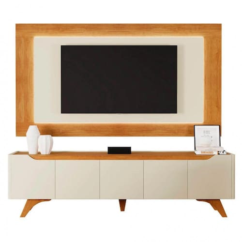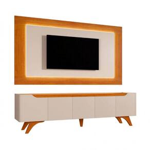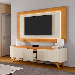 Com o painel e rack Grecia sua sala de estar ganhará ainda mais elegância, charme e beleza. Com iluminação em LED, que dá outra vida para o produto, o painel possui 15mm de espessura, sendo os centrais em MDF e está disponível nas cores naturalle com platinum e naturalle com off white. Esse lindo rack tem dobradiças de 35mm com slow motion, gaveta central com corrediça telescópica reforçada, pés de madeira maciça e cantos com acabamento curvo em MDF. As cores são off white ou off white com naturalle.