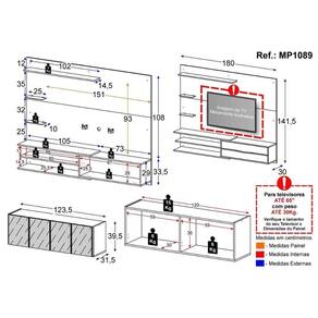 Observação: Devido às variações de tamanho dos televisores, recomenda-se verificar as medidas da sua TV antes da compra.