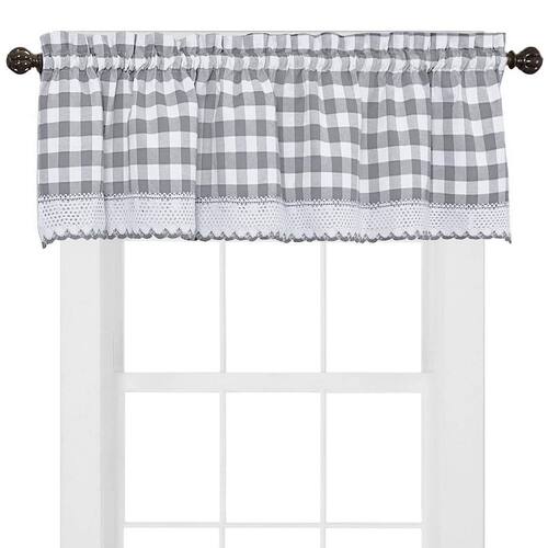 Sweet Home Collection Cortina de janela de cozinha tratamento decorativo design xadrez búfalo, sanefa, cinza - Material: mistura de algodão - Estilo: clássico - Padrão: verificado - Cuidados com o tecido: lavagem à máquina - Cor: cinza