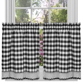 Sweet Home Collection Tratamento de painel de cortina de janela de cozinha, camada de 91,44 cm, preto/branco - Material: 60% poliéster 40% mistura de algodão - Estilo: país - Padrão: guingão - Tipo de cabeçalho de tratamento de janela: bolso de haste - Cuidados com o tecido: lavagem à máquina