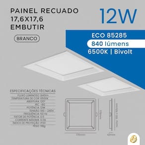 Com um design quadrado e acabamento branco, esse painel oferece um visual moderno e discreto que se integra perfeitamente à sua decoração. Disponível na cor de luz 6500K. Seja para realçar detalhes, iluminar ambientes ou criar uma sensação acolhedora, o Painel Recuado de Embutir é a escolha perfeita. Transforme a iluminação do seu espaço com estilo e sofisticação.