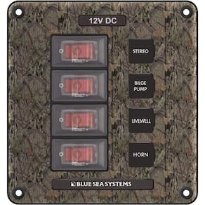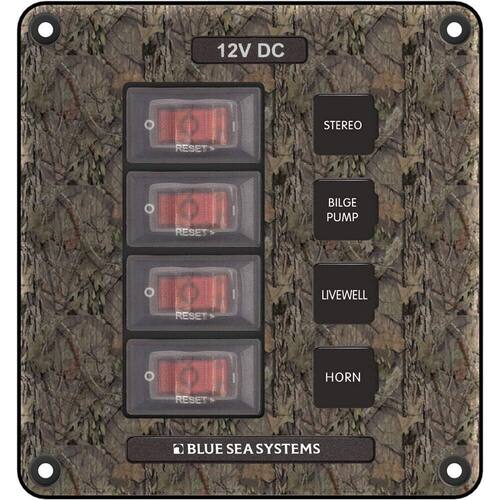 Painel de interruptor de disjuntor resistente à água 4323 da Blue Sea Systems, Camo, 4 posições