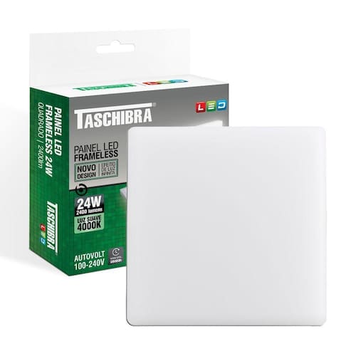 Painel de Led Frameless Quadrado Embutir/Sobrepor 24W Bivolt Taschibra 4000K Luz Neutra