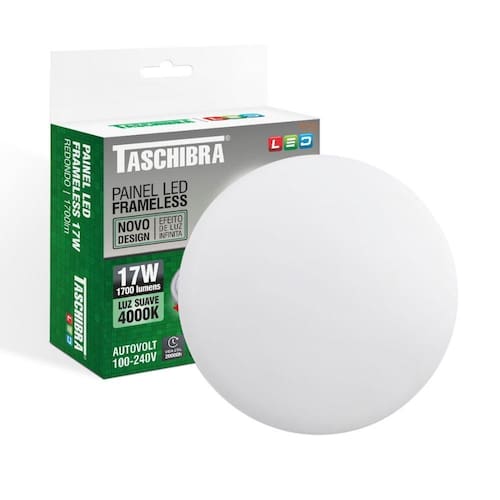 Painel de Led Frameless Redondo Embutir/Sobrepor 17W Bivolt Taschibra 4000K Luz Neutra