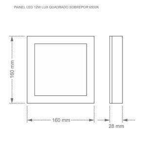 Painel de Led Quadrado Sobrepor 12W Bivolt Taschibra 6500K Luz Fria