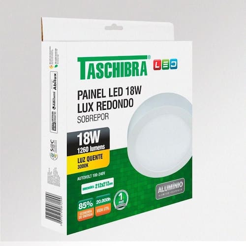 Painel de Led Redondo Sobrepor 18W Bivolt Taschibra 3000K Luz Quente