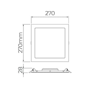 Especificações Gerais do Produto: Dimensões AxLxP (mm): 28x270x270 Material: Policarbonato Garantia: 2 anos junto ao fabricante Cor Principal: Branco Voltagem: Bivolt Ângulo de Abertura: 120º Eficiência Luminosa: 79lm/W Fator de Potência: Maior que 0,9 Fluxo Luminoso: 1900 lúmens Formato: Quadrado Potência: 24W Vida Útil: 25.000 horas Instalação: Embutir IRC (Índice de Reprodução de Cor): Maior que 80 Nicho para Instalação: 250x250 Modelo/Tecnologia: LED Embutido Cor: Branco