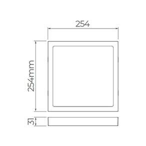 Especificações Gerais do Produto:Dimensões AxLxP (mm): 31x254x254Material: PolicarbonatoGarantia: 2 anos junto ao fabricanteCor Principal: BrancoVoltagem: BivoltEficiência Luminosa: 79lm/WFator de Potência: Maior que 0,9Fluxo Luminoso: 1900 lúmensFormato: QuadradoPotência: 24WVida Útil: 25.000 horasInstalação: SobreporIRC (Índice de Reprodução de Cor): Maior que 80Modelo/Tecnologia: LED EmbutidoCor: BrancoO que vem na caixa:1 Painel nManual de Instalação