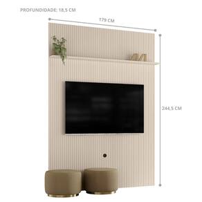 Painel em MDF frisado (baixo relevo), estrutura com chapas em MDP e MDF de 12 e 25mm. Produto desenvolvido para ser fixado na parede. O televisor deve ser fixado no painel.