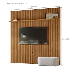 Painel em MDF frisado (baixo relevo), estrutura com chapas em MDP e MDF de 12 e 25mm. Suporta até 75. Produto desenvolvido para ser fixado na parede. O televisor deve ser fixado no painel.