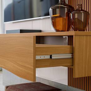 Destaque sua sala com o elegante painel ripado. Gavetas com corrediças telescópicas e detalhe fresado. Prateleiras e tampo em MDP 25mm. Ideal para TVs até 65 polegadas e suporta 40 Kg.