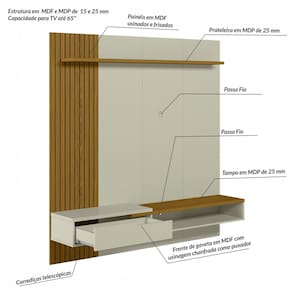 - Polegadas: Acima de 47" - Garantia: 3 Meses - Volumes: 2 - Tamanho Máximo da Tv: Até 65 Polegadas - Recomendações de manutenção: Recomendado uso de pano umedecido. Não aplicar lustra móveis. - Produto Necessita de Montagem?: Sim - Peso do Produto Montado: 62 - Material da Estrutura: Mdp e Mdf - Escala de Brilho: Acetinado - Acabamento: Pintura UV - Peso Máximo Suportado: 32 - Medida do Produto Montado (LXCXA): 35,2cmX180cmX180cm