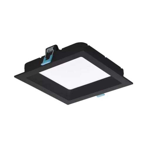 Painel LED quadrado recuado com 18W e luz quente de 3000K, ideal para iluminação embutida em tetos. Acabamento preto garante visual contemporâneo e discreto, complementando diversos estilos de decoração em ambientes residenciais ou comerciais.