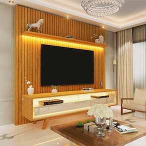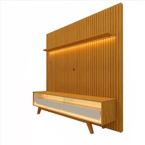 O conjunto Rack e Painel é a peça ideal para quem deseja modernidade e sofisticação em sua sala de estar. O painel conta uma linda prateleira chanfrada com bordas laqueadas, o complemento possibilita duas opções de montagem, sendo elas na parte superior e inferior do produto, com LED em luz quente com difusor e ripas autênticas. Já o Rack contém LED em luz quente com difusor na parte superior e inferior do nicho, o item proporciona sensação de aconchego para o seu ambiente, com bordas chanfradas e laqueadas, o nicho também conta com divisória em vidro de 8mm, gavetas chanfradas com bordas laqueadas e pés em madeira maciça com detalhes abaulados.