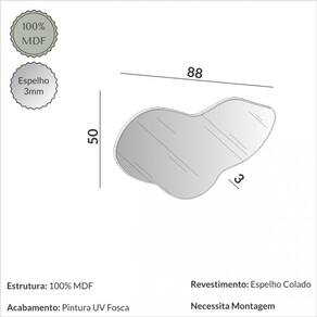 A peça é produzida 100% em MDF, com pintura de 6 camadas de proteção, o que confere alta qualidade de acabamento. O ES20 possui formato orgânico e é uma peça chave para qualquer ambiente. Com proporções generosas, este espelho é destaque para qualquer ambiente e confere um design elegante para completar a decoração da sua casa com personalidade.
