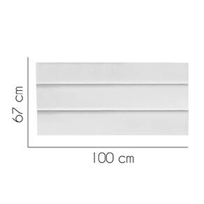 - Largura: 100 cm; - Altura: 67 cm; - Profundidade: 11 cm; - Produto estofado; - Produzido em Madeira de Pinus e Eucalipto; - Pés em pvc;