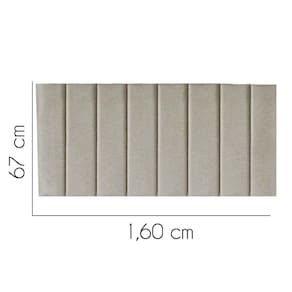 - Largura: 160 cm; - Altura: 67 cm; - Profundidade: 11 cm; - Produto estofado; - Produzido em Madeira de Pinus e Eucalipto; - Pés em pvc.