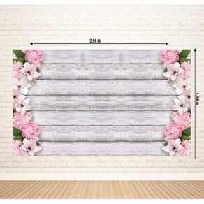 Painel Fotográfico Em Tecido Madeira Floral Rosa 2,80X1,50M