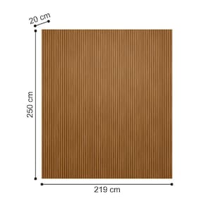 ILUMINAÇÃO: Não possui | ALTURA DO PRODUTO COM EMBALAGEM (CM): 53,7 | MATERIAL PRINCIPAL: MDP/MDF | LARGURA PRODUTO COM EMBALAGEM (CM): 257,8 | PESO PRODUTO COM EMBALAGEM (KG): 108,3 | INSTRUÇÕES/CUIDADOS: Limpar com pano macio e seco, não utilizar produtos abrasivos | ALTURA DO PRODUTO (CM): 250 | COMPRIMENTO DO PRODUTO (CM): 20 | QUANTIDADE DE PRATELEIRAS: 1 | COR PREDOMINANTE: Nature Fosco | CONTEÚDO DA EMBALAGEM: 1 Painel | CORES DO PRODUTO (FILTRO DE CORES): Marrom | PRODUTO: Rack | MARCA: CasaH | PARA TVS DE ATÉ:: 75 | LARGURA DO PRODUTO (CM): 219 | PRODUTO PRECISA DE MONTAGEM?: Sugerimos a contratação de um montador para a montagem do produto. Não nos responsabilizamos por causadas no ato da montagem. | MATERIAL PARA FILTRO: MDP/MDF | DESCRIÇÃO DO TAMANHO: 250x219x20 | COMPRIMENTO PRODUTO COM EMBALAGEM (CM): 34,3 | ESTADO DE ORIGEM: PR | PESO DO PRODUTO (KG): 103,2