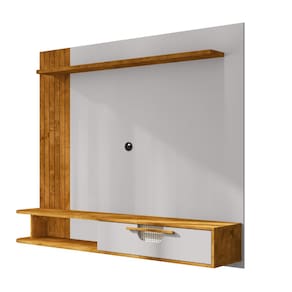 Características: Estruturado em MDP e MDF 1 Porta Basculante Porta com dobradiças metálicas Puxadores em MDF Acabamento pintura com verniz Poliéster UV Prateleira Superior MDP de 25mm Painel Frisado em MDF 12mm Suporta TV até 60 Polegadas Prateleiras suporta de 8 á 10kg