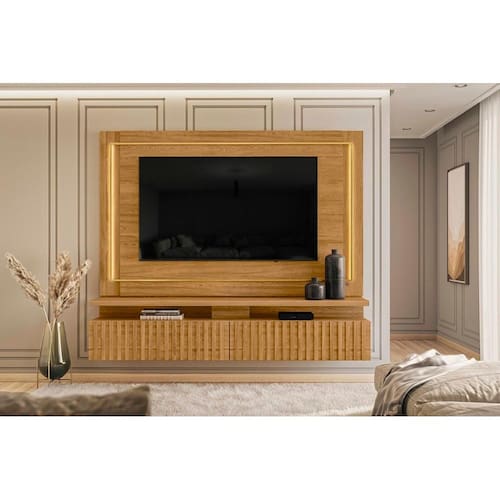 O Painel Gaia possui diferenciais únicos para sua sala de estar, o produto é amplo, possui fitas de LED e suporta TV de até 75 polegadas, irá te surpreender com seu design moderno e cores naturais, remetendo charme e elegância ao ambiente da sua casa!