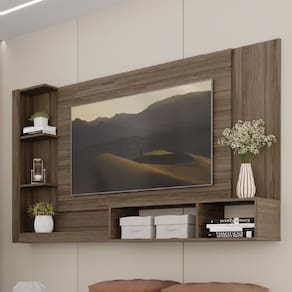 O Painel de TV Ganges possui design contemporâneo com linhas descomplicadas e funcionais. Seus dois nichos inferiores de amplo espaço, são perfeitos para armazenar equipamentos eletrônicos e suas prateleiras na lateral comportam diversas decorações. O painel permite fixar televisões com telas de até 60.