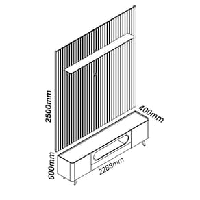 Largura Painel: 230 cmLargura Rack: 210 cmAltura Painel: 250 cmAltura Rack: 60 cm c/ pésProfundidade: 45 cm conjunto painel + rackPeso: 147 KilosGarantia: 03 MesesInformações Sobre Montagem: Não possuímos serviço de montagem.