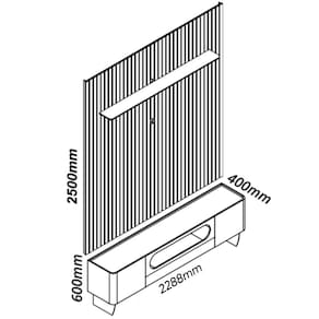 Largura Painel: 230 cmLargura Rack: 210 cmAltura Painel: 250 cmAltura Rack: 60 cm c/ pésProfundidade: 45 cm conjunto painel + rackPeso: 147 KilosGarantia: 03 MesesInformações Sobre Montagem: Não possuímos serviço de montagem.