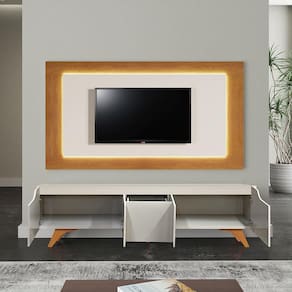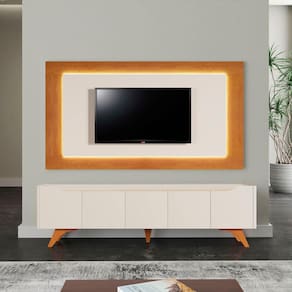 Com o painel e rack Grecia sua sala de estar ganhará ainda mais elegância, charme e beleza. Com iluminação em LED, que dá outra vida para o produto, o painel possui 15mm de espessura, sendo os centrais em MDF. Esse lindo rack tem dobradiças de 35mm com slow motion, gaveta central com corrediça telescópica reforçada, pés de madeira maciça e cantos com acabamento curvo em MDF