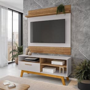 1x Painel para Tv de até 55 Polegadas Guarujá Cinamomo/Off White Largura: 136 cm Altura: 135 cm Peso: 26,2 kg Profundidade: 19,5 cm